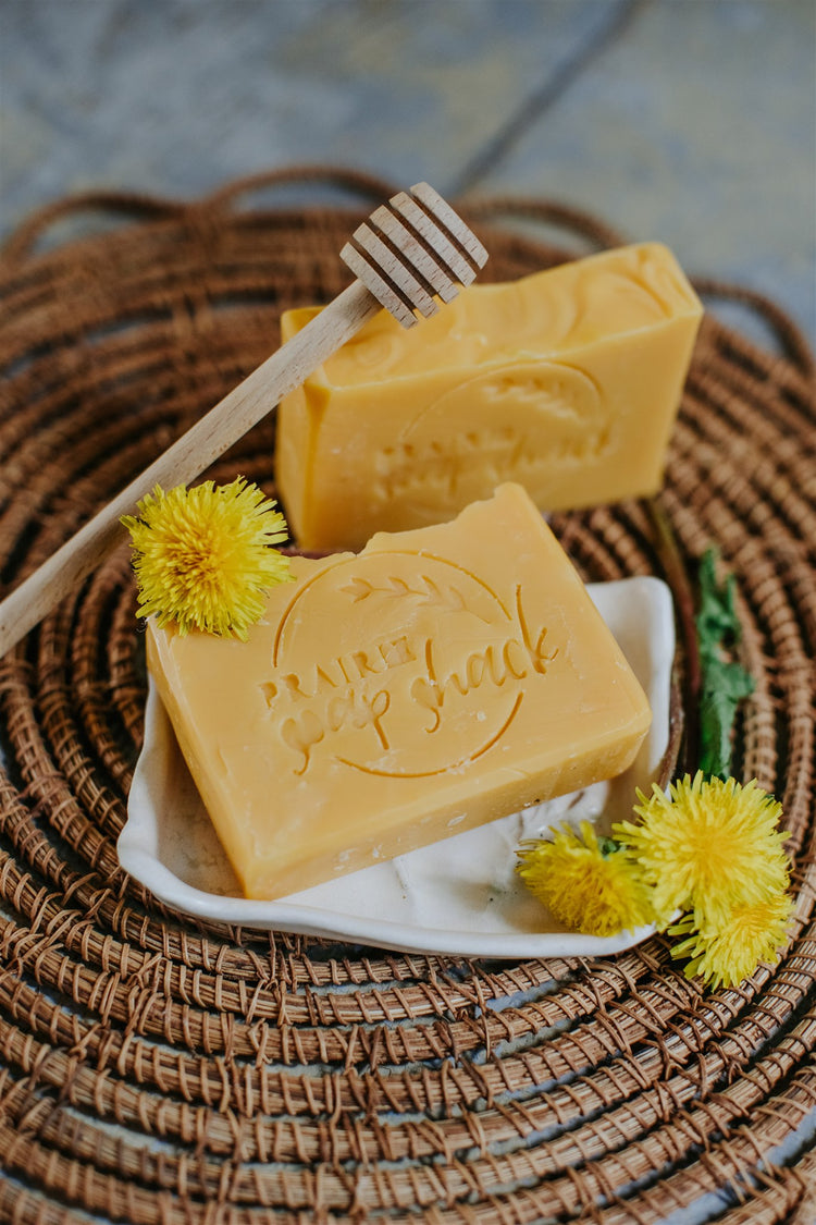 Did you know dandelions have wonderful healing skin care properties? This gentle soap is for people with very sensitive skin or problematic skin. This bar is considered unscented with only an infusion of dandelion flower, dandelion tea, and local honey creating a subtle aroma. Dead skin cells are reborn with the powerful antioxidants, vitamins, and anti-inflammatory elements of the dandelion, while jojoba oil gives a silky finish and nourishing conditioning. Annatto seed provides natural colouring to complete this indulgent and exclusive treatment.