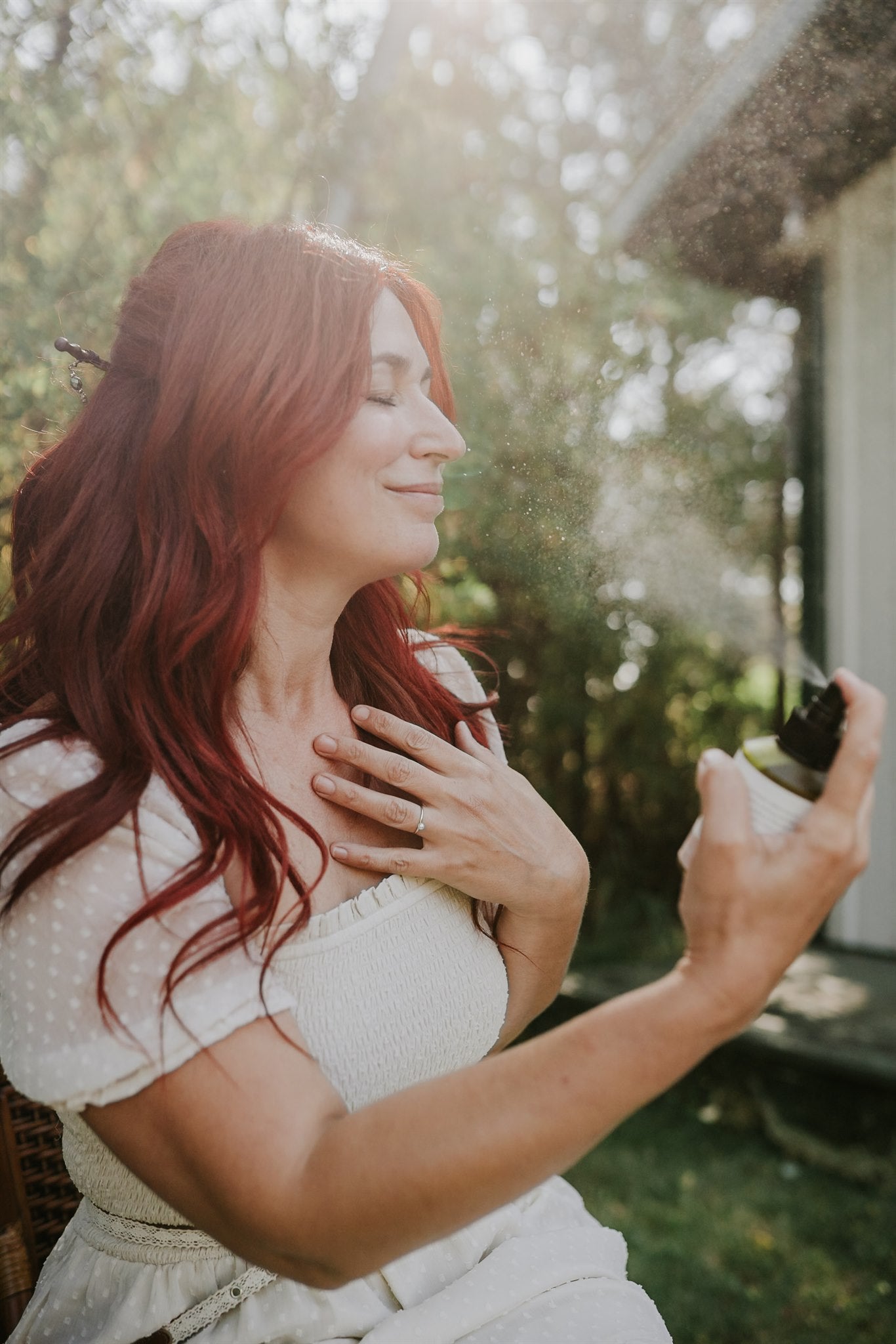 Aqua, Rosa Damascena Distillate Water, Anthemis Nobilis (Chamomile) Flower Water, Hamamelis Virginiana (Witch Hazel) Water,  Hydroxypropyltrimonium Honey, Glycerin, Calendula Officinalis Flower*, Chamomilla Recutita Flower Extract*, Phenoxyethanol, Sorbic Acid, Caprylyl Glycol, Benzoic Acid, Potassium Sorbate, Lactic Acid, Populus Tremuloides Bark Extract, Sodium Phytate *Homegrown by Jess