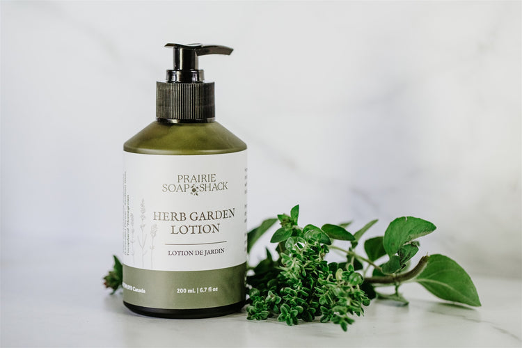 Scented with a crisp blend of peppermint, lavender, and thyme essential oils, this lotion smells like a walk through a vibrant summer herb garden. Cooling and calming, it's perfect for everyday use on hands, arms, legs, and feet.